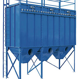 含塵氣體由進氣口進入灰斗或通過敞開法蘭口進入濾袋室,含塵氣體透過濾袋過濾為凈氣進入凈氣室,再經(jīng)凈氣室排氣口,由風機排走。粉塵積附再